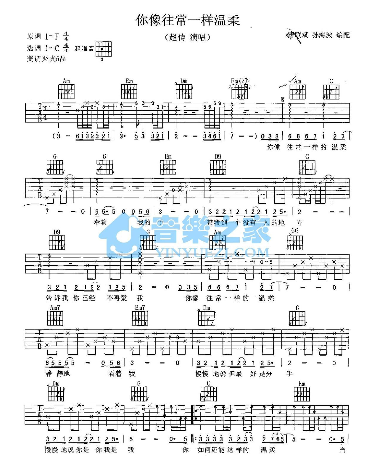 C调双吉他版赵传《你如何还能这样的温柔》吉他弹唱六线谱...