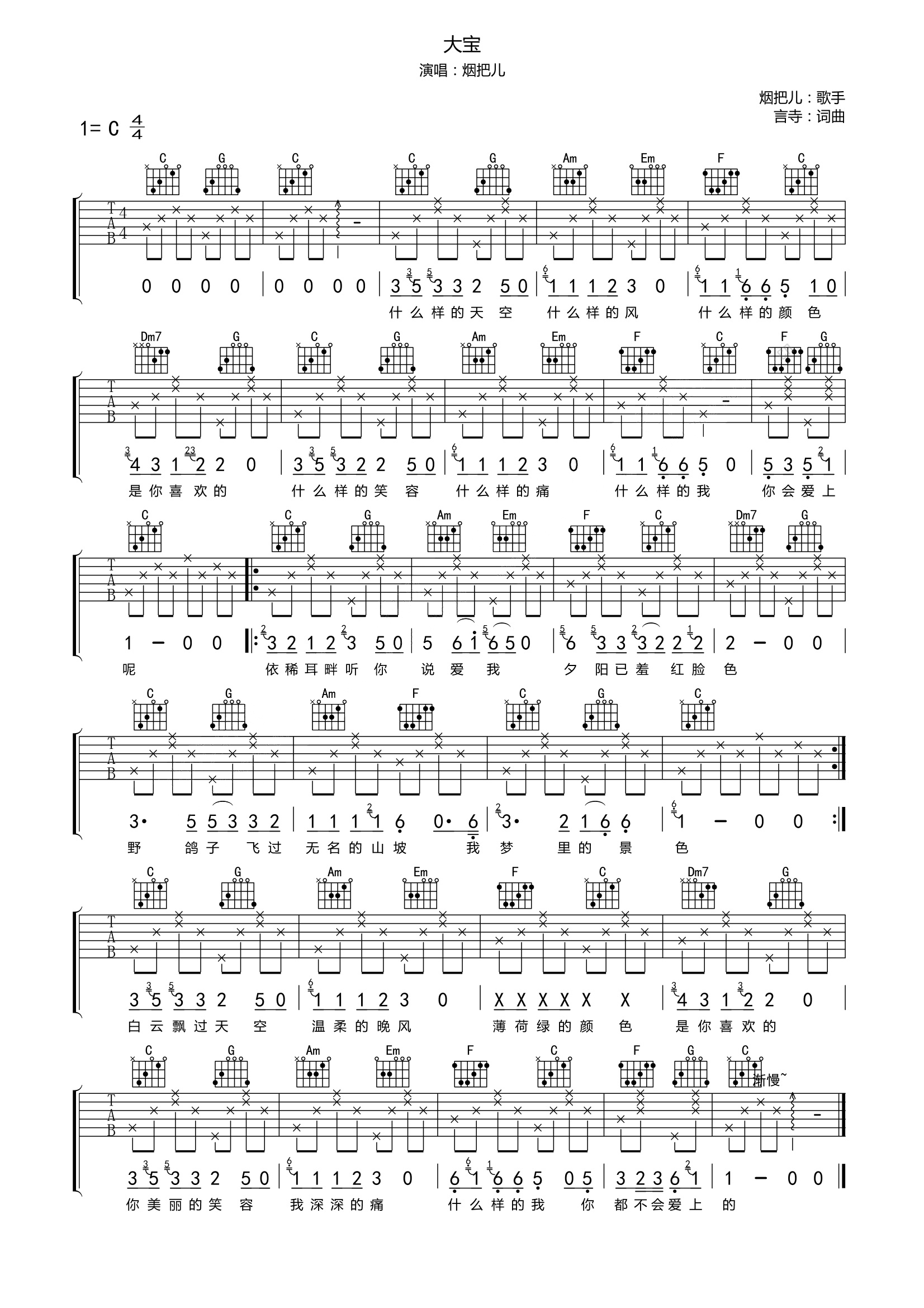 吉他烟把儿《大宝》吉他谱 - 非常多人都在弹的版本