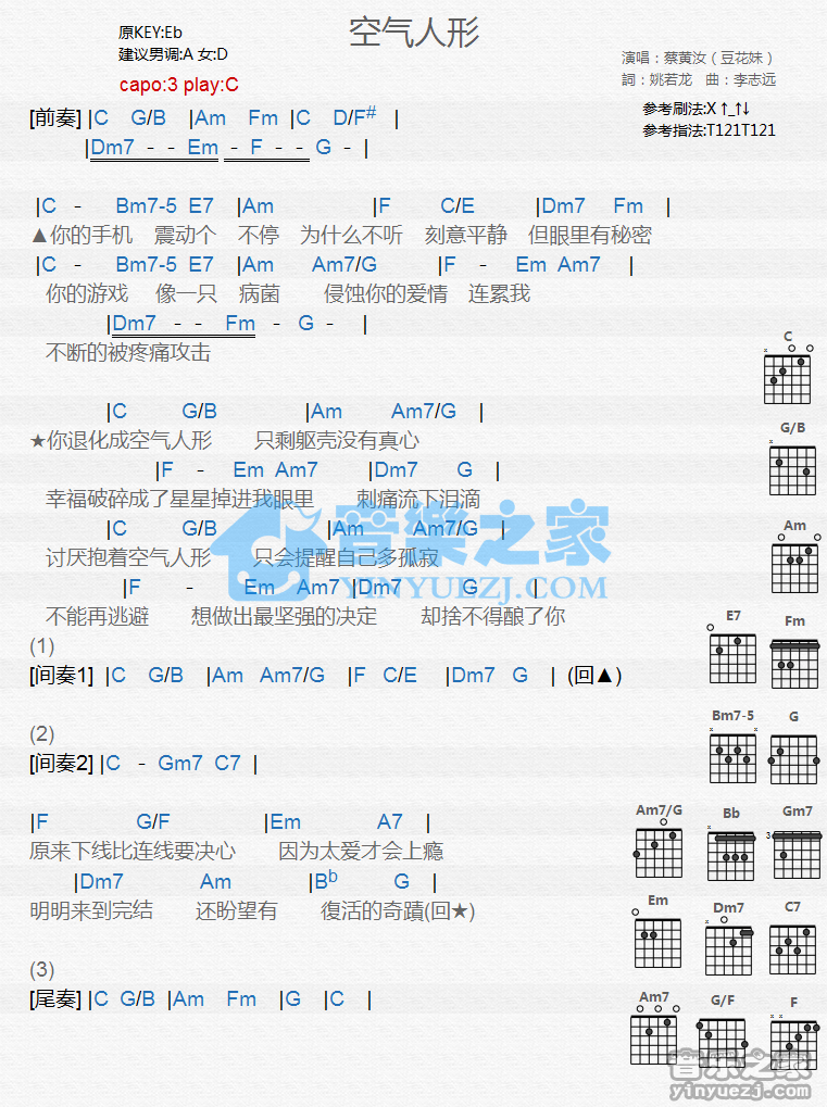 吉他蔡黄汝《空气人形》吉他谱 - 完整版