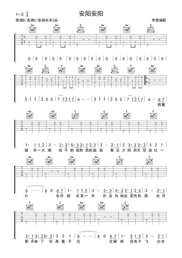 《安阳安阳》吉他谱_C调吉他弹唱谱...