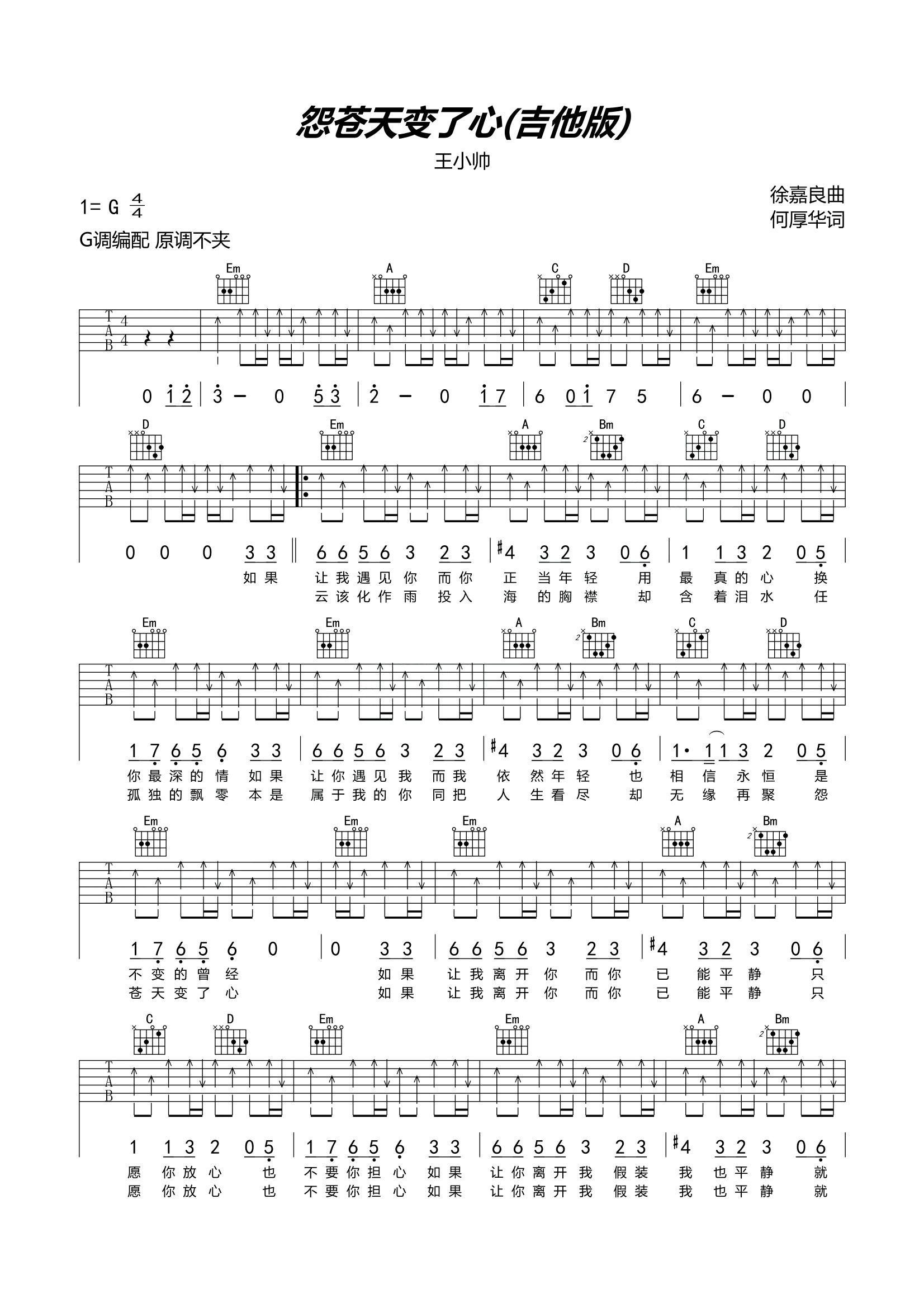 吉他王小帅《苍天变了心》吉他谱 - 非常多人都在弹的版本