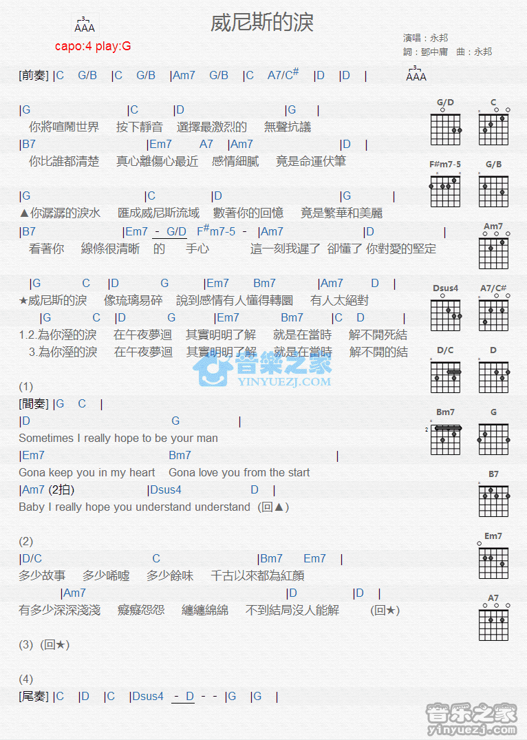 吉他永邦《威尼斯的泪》吉他谱 - 很多人都在弹的版本