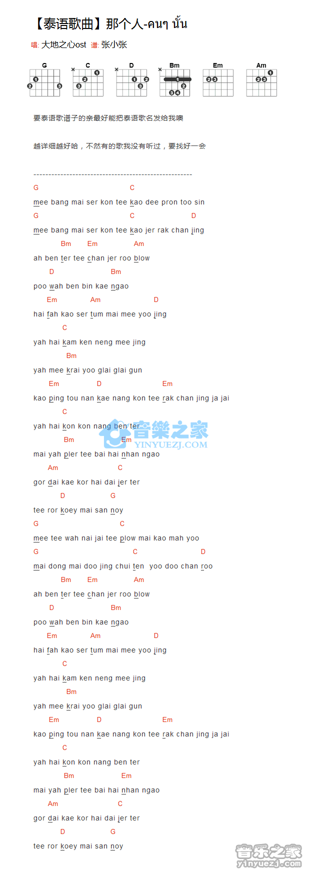 吉他泰语歌曲《那个他》吉他谱 - 免费版