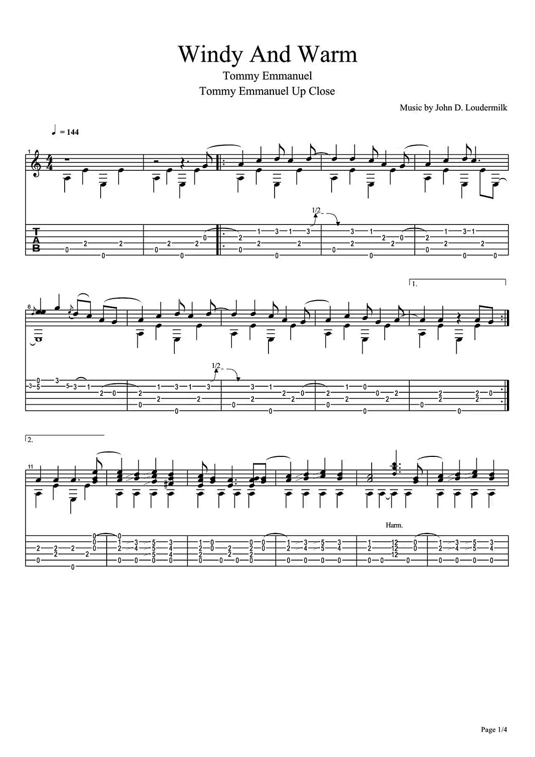 吉他ommyEmmanuel(汤米·伊玛诺)《Windy And Warm》吉他谱 - 免费版