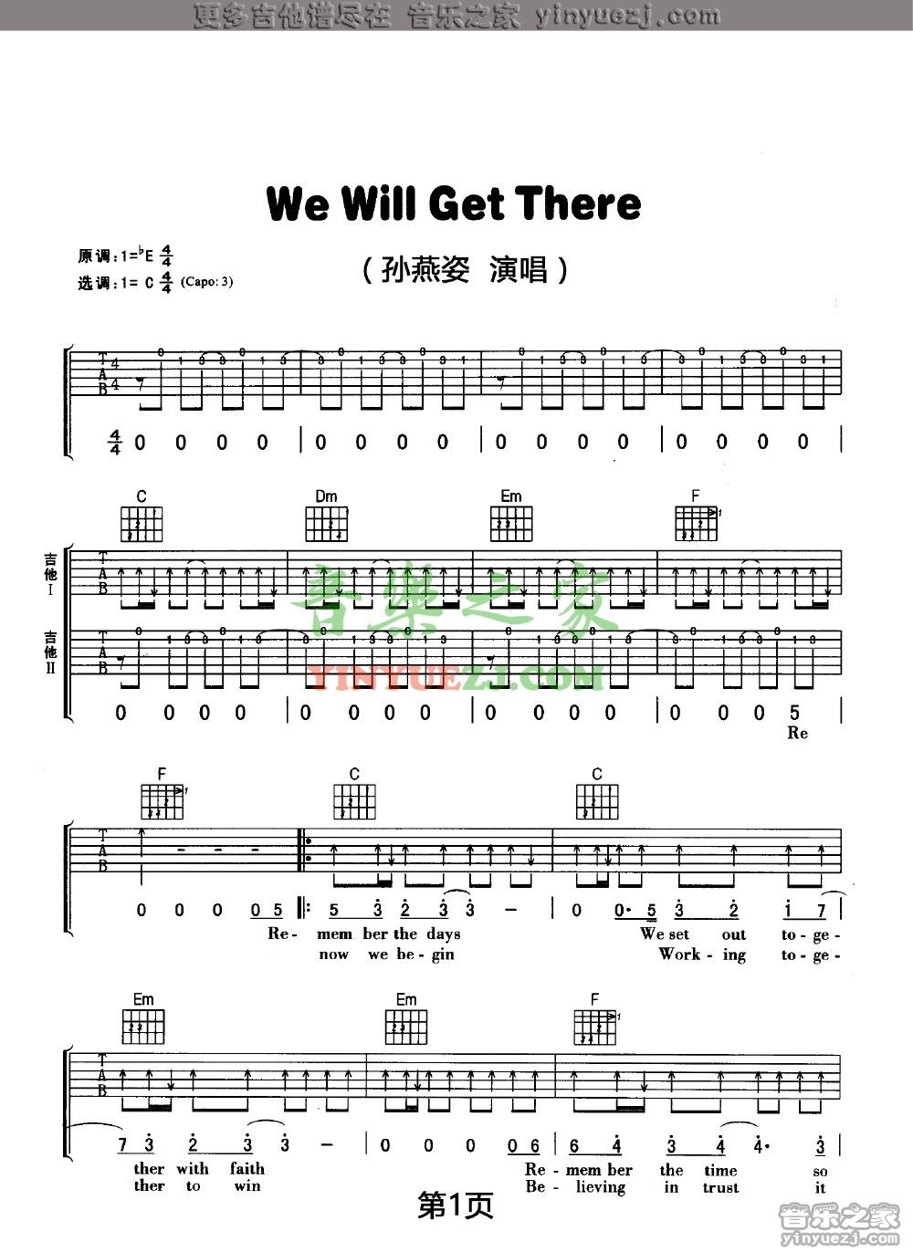 孙燕姿《WeWillGetThere》吉他谱,YYZJ编配出品,共有6张高清图谱。...