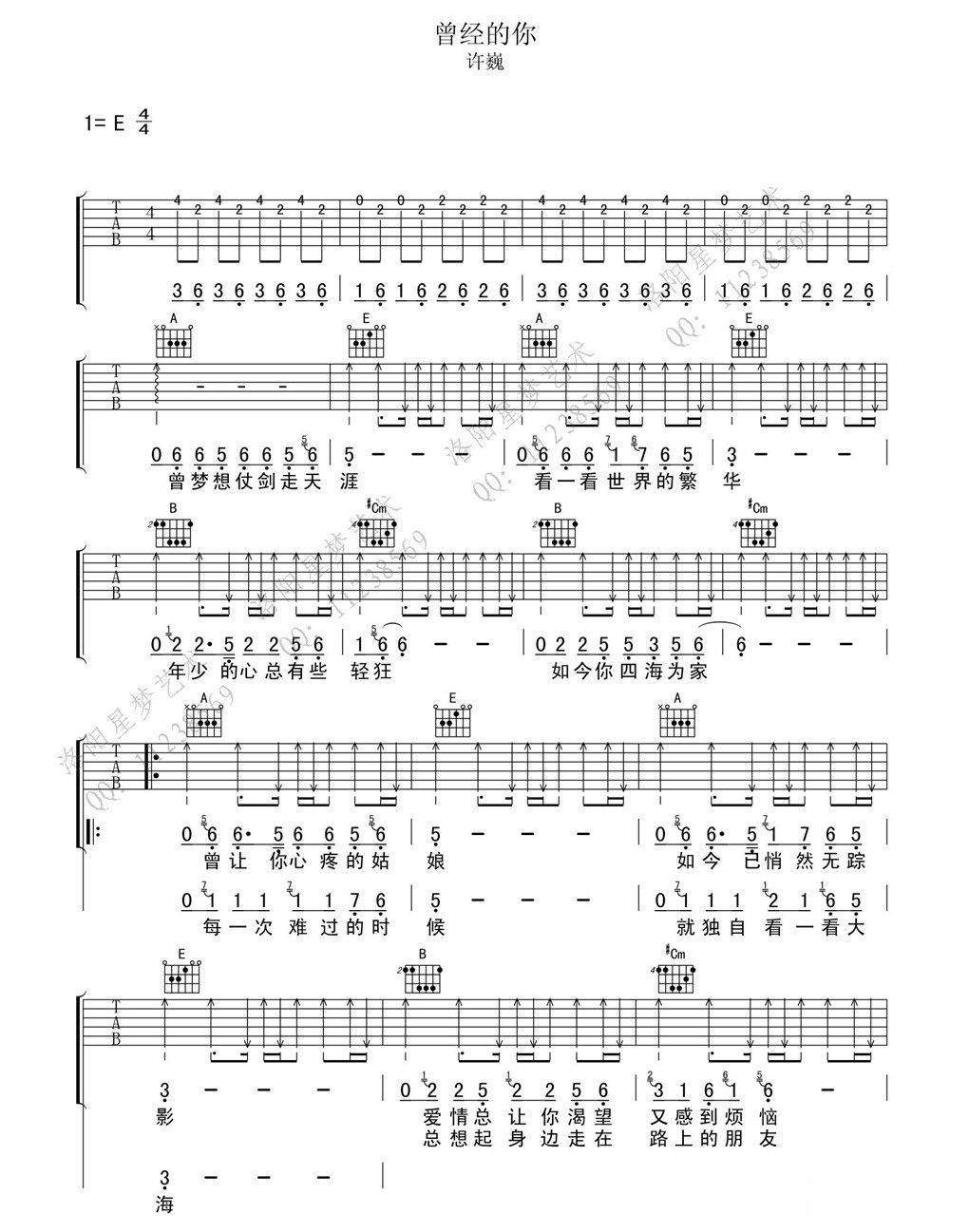 吉他许巍《曾经的你》吉他谱 - 非常多人都在弹的版本