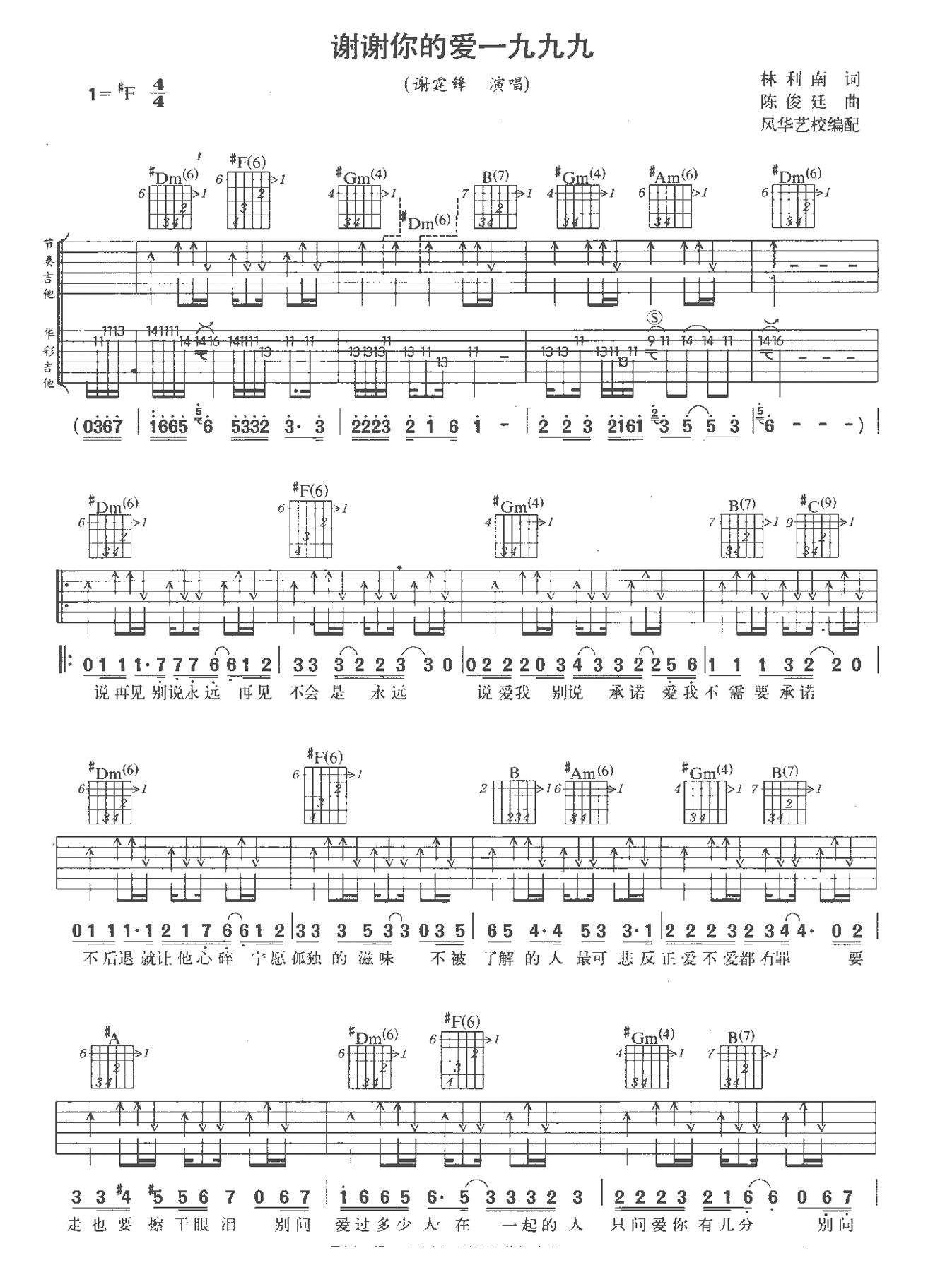 谢霆锋《谢谢你的爱1999》吉他谱_吉他弹唱谱...