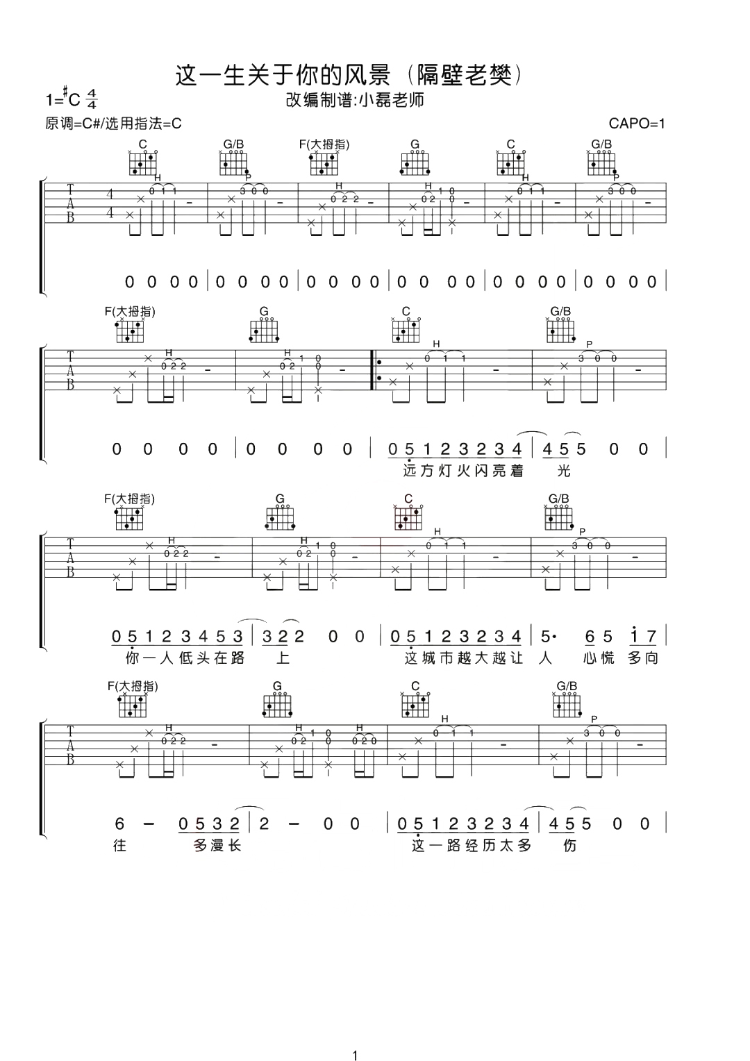 隔壁老樊《这一生关于你的风景》吉他谱_C调吉他弹唱谱...