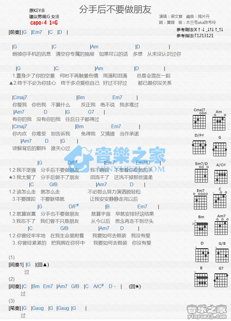 吉他梁文音《分手后不要做朋友》吉他谱 - 完整版