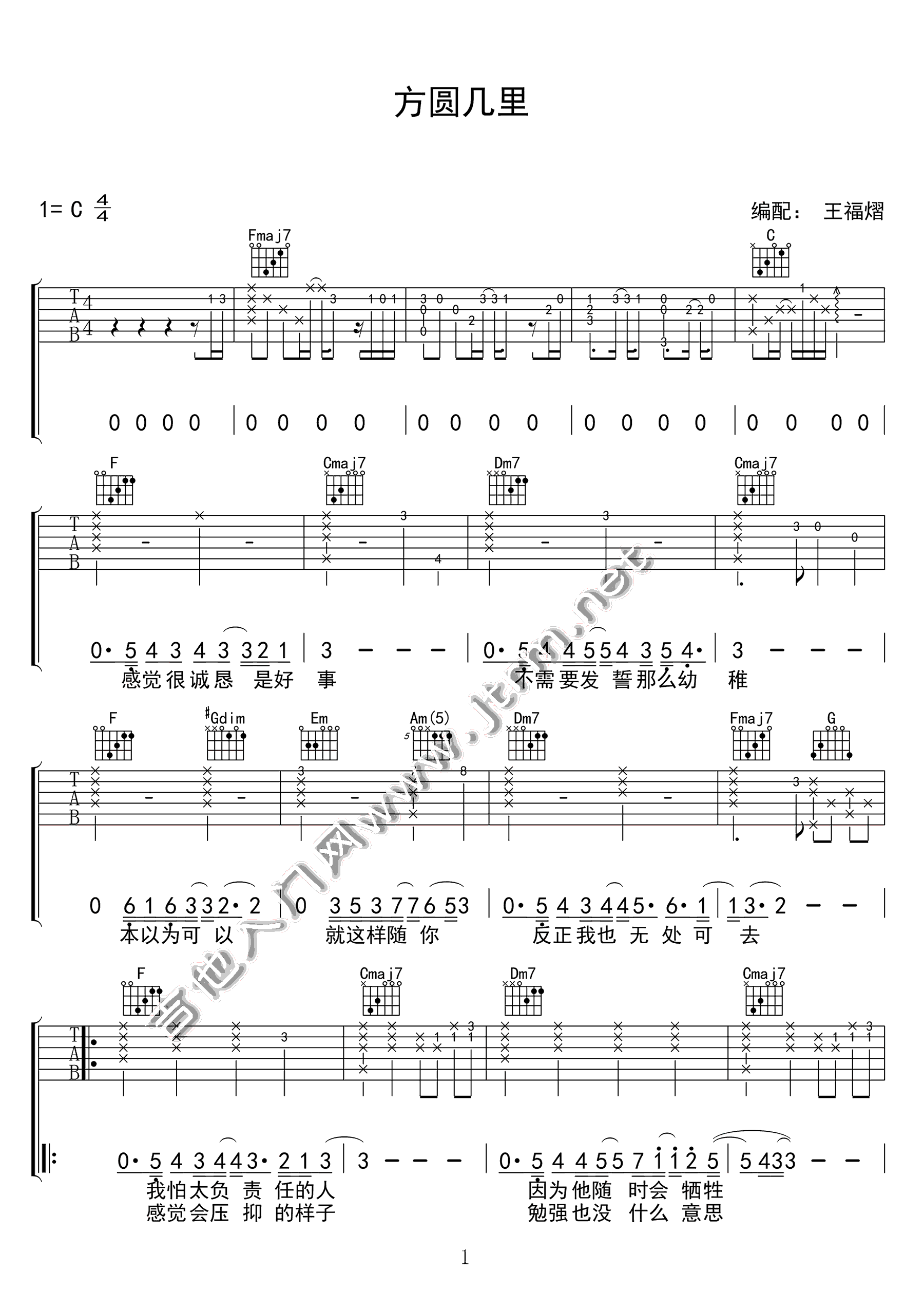 《方圆几里》吉他谱_薛之谦_C调原版六线谱_吉他弹唱教学分享,《方圆几里》是薛之谦填词、谱曲和演唱的国语歌曲。同时也是爱情微电影《最熟悉的陌生人》主题曲。歌曲的曲调偏压抑,很好的烘托出了求爱不得,爱恨交加的复杂情感世界。其中歌词中有一句非常的触动我的内心,“因为我爱你,和你没关系...