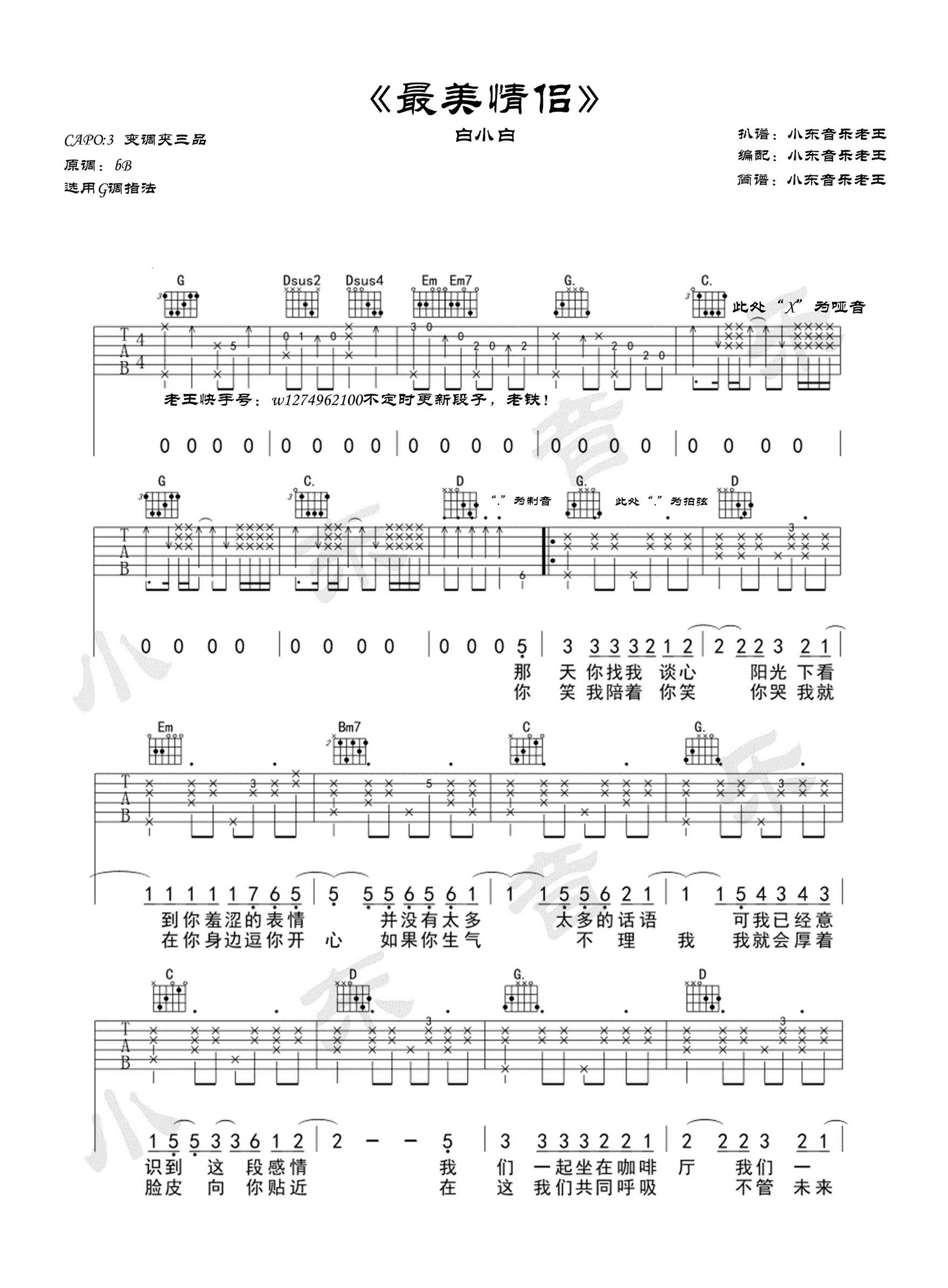 吉他白小白《最美情侣》吉他谱 - 很多人都在弹的版本