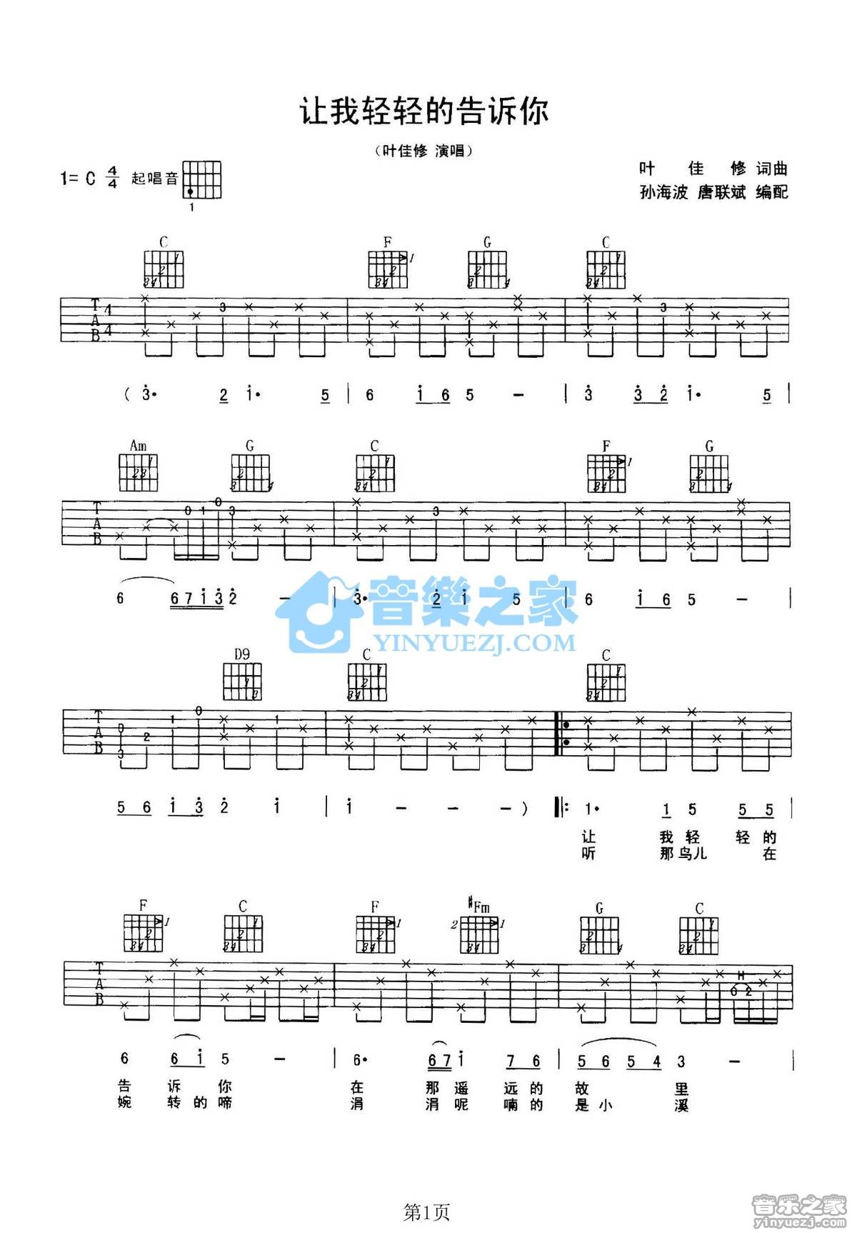 吉他叶佳修《让我轻轻地告诉你》吉他谱