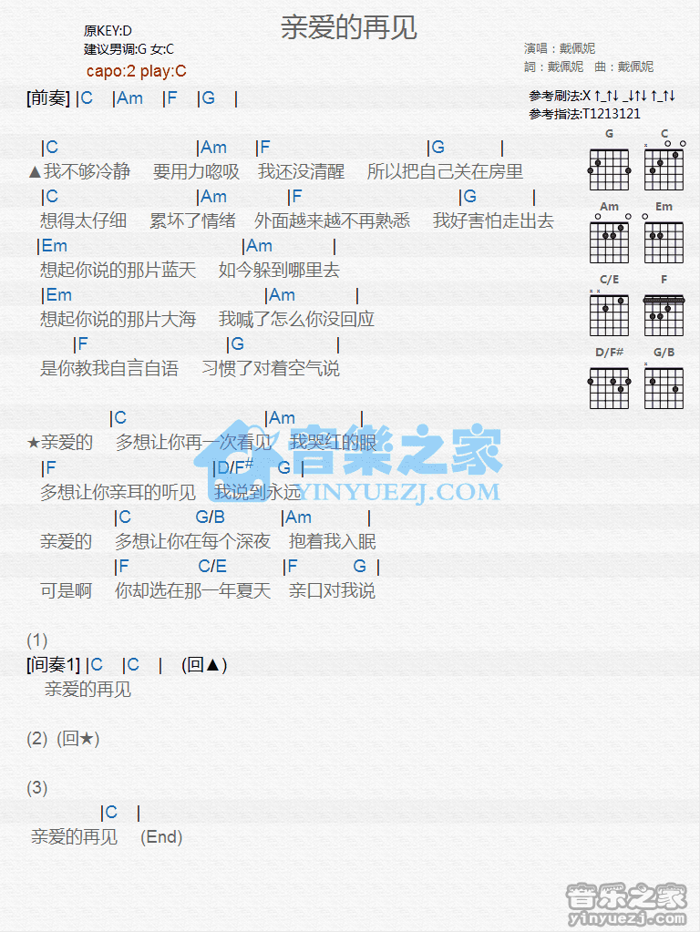 吉他戴佩妮《亲爱的再见》吉他谱 - 完整版