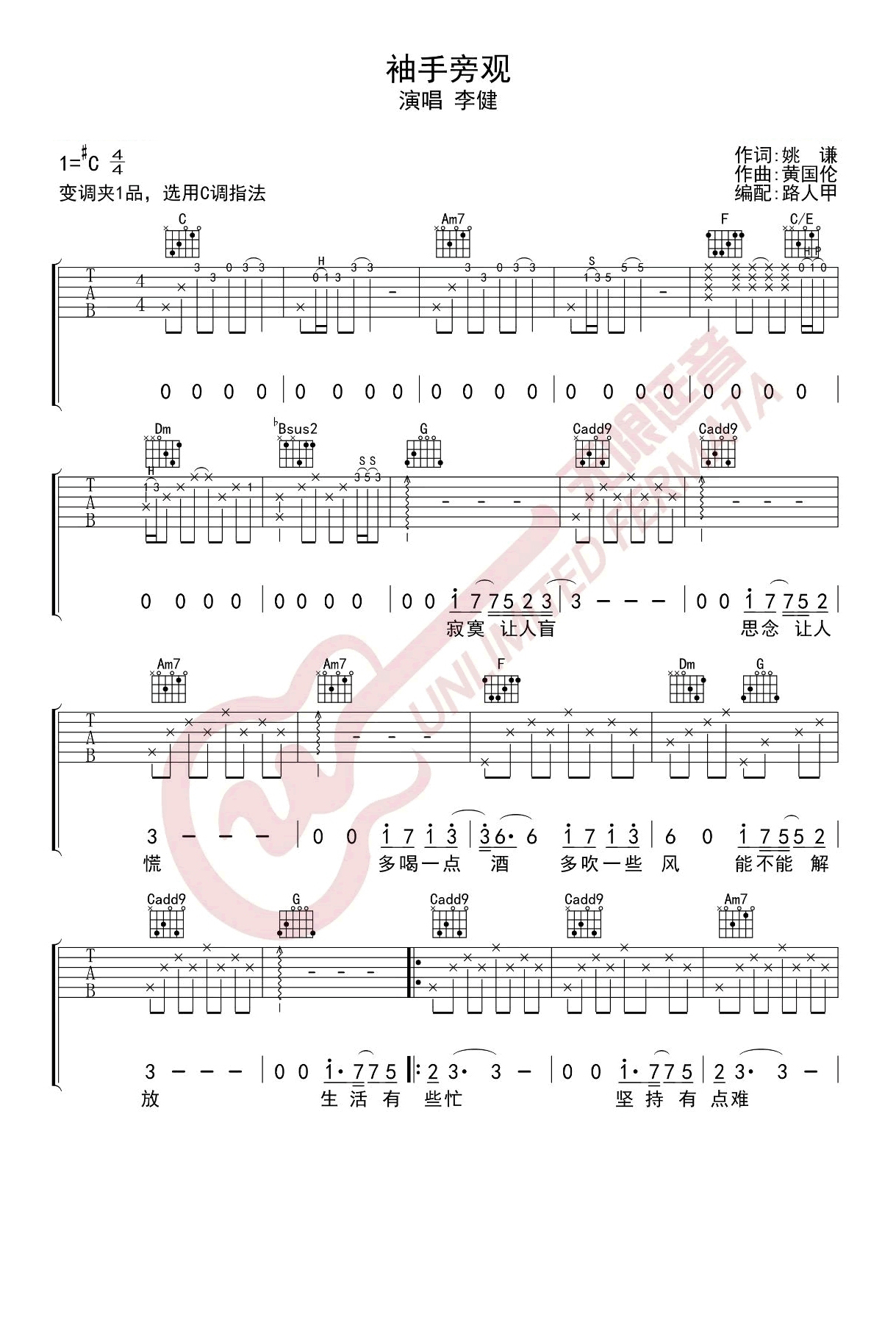吉他李健《袖手旁观》吉他谱 - 无限延音编配