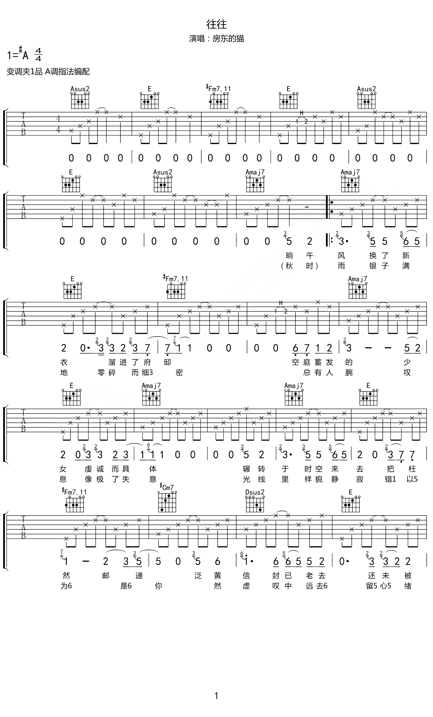 吉他房东的猫《往往》吉他谱 - 非常多人都在弹的版本
