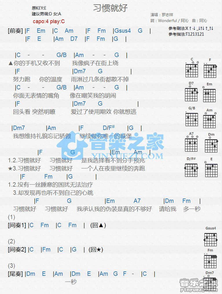 吉他罗志祥《习惯就好》吉他谱 - 推荐版本