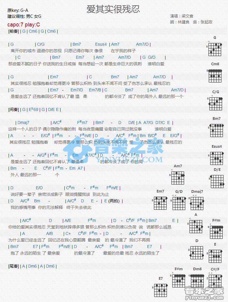 吉他梁文音《爱其实很残忍》吉他谱 - 很多人都在弹的版本