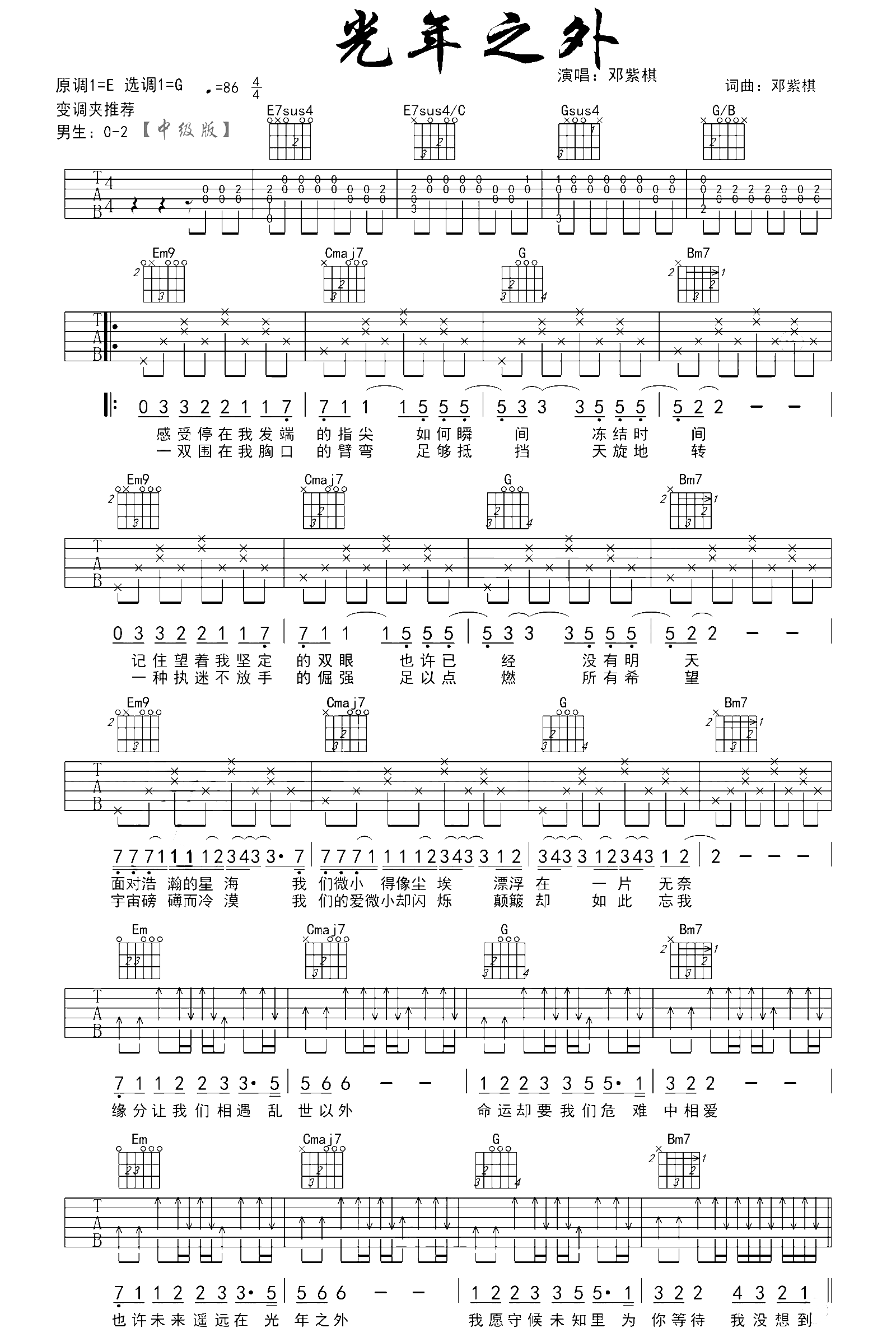 吉他邓紫棋《光年之外》吉他谱 - 免费版