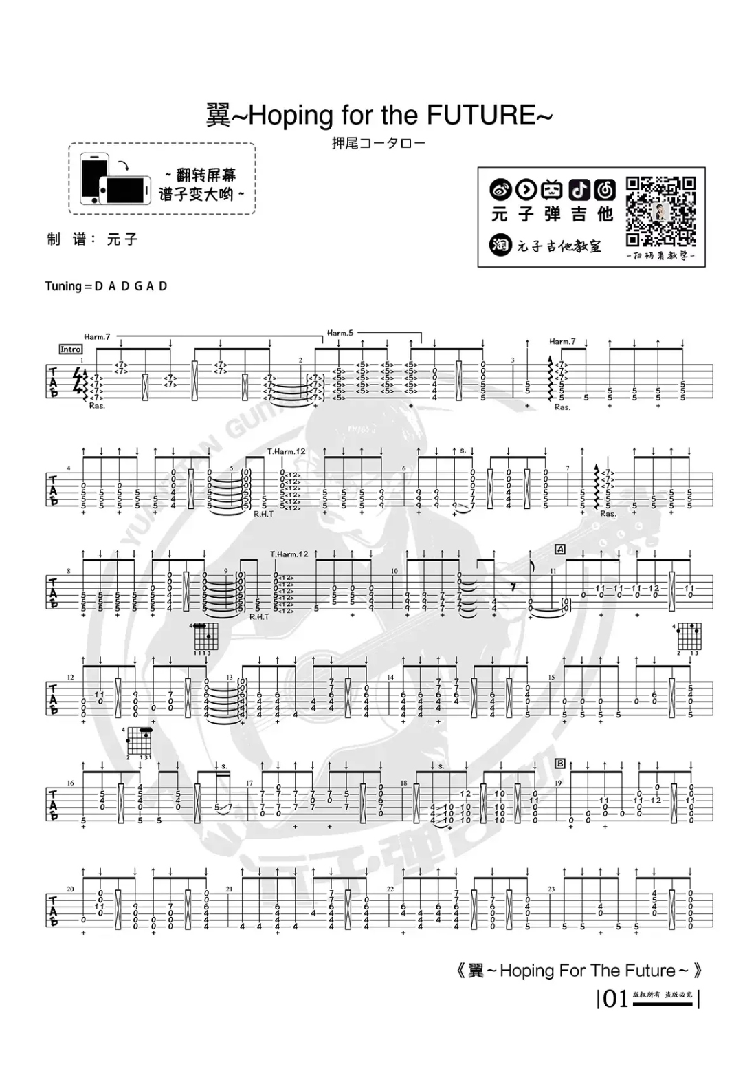 吉他押尾《翼~Hoping for the FUTURE》吉他谱 - 推荐版本