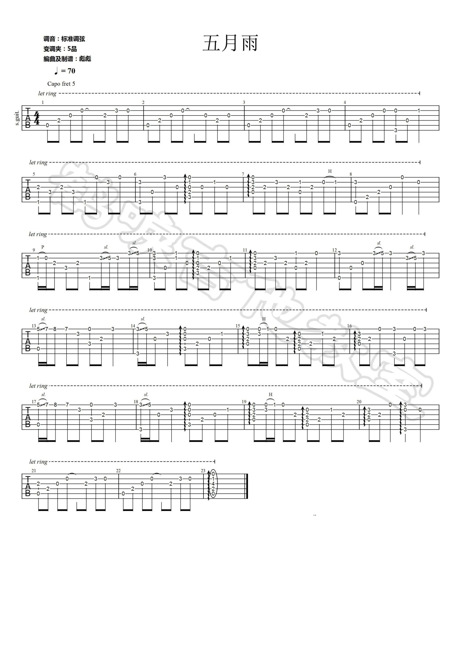《五月雨》是日本动画《火影忍者》中的插曲,该曲子用小提琴和钢琴的配合演奏,亦快亦慢的演奏方式,融会贯通的表现手法,仿佛让我们感到鸣人的奋斗、成长,鸣人的同伴们的故事就在身边,以及这个忍者世界的各种争斗和阴谋扣人心弦。《五月雨》吉他指弹视频演示《五月雨》吉他指弹视频教学演奏变调夹夹...