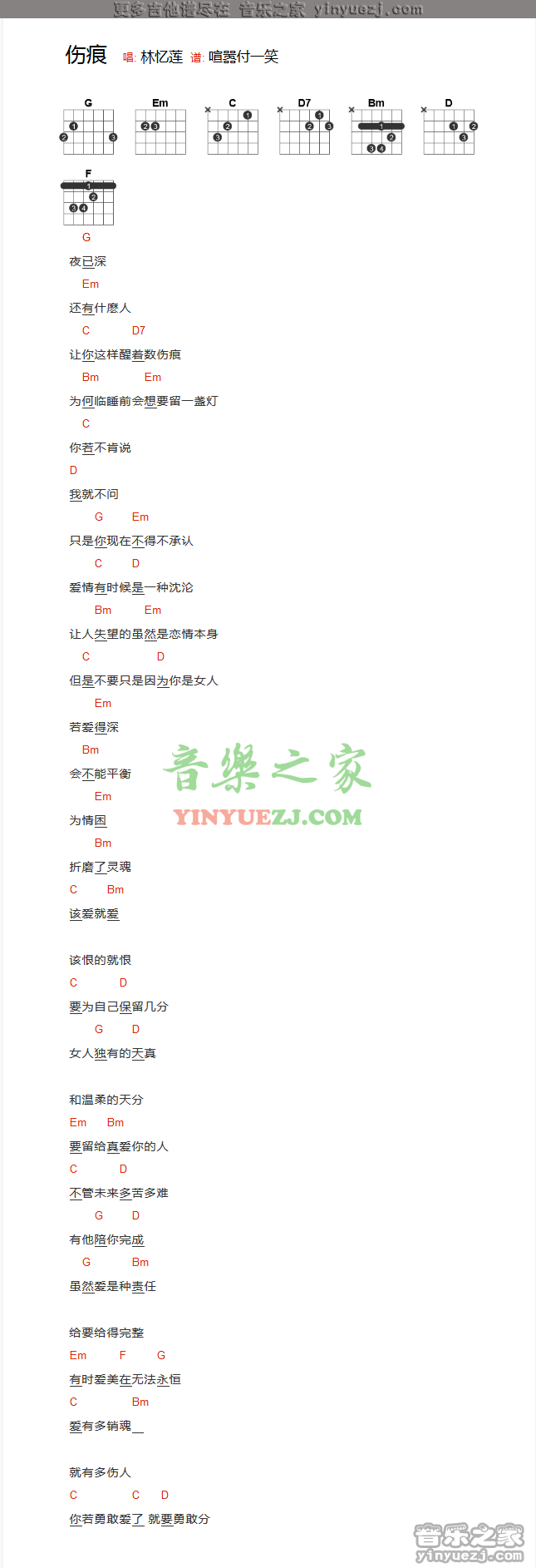 关于伤痕的曲谱