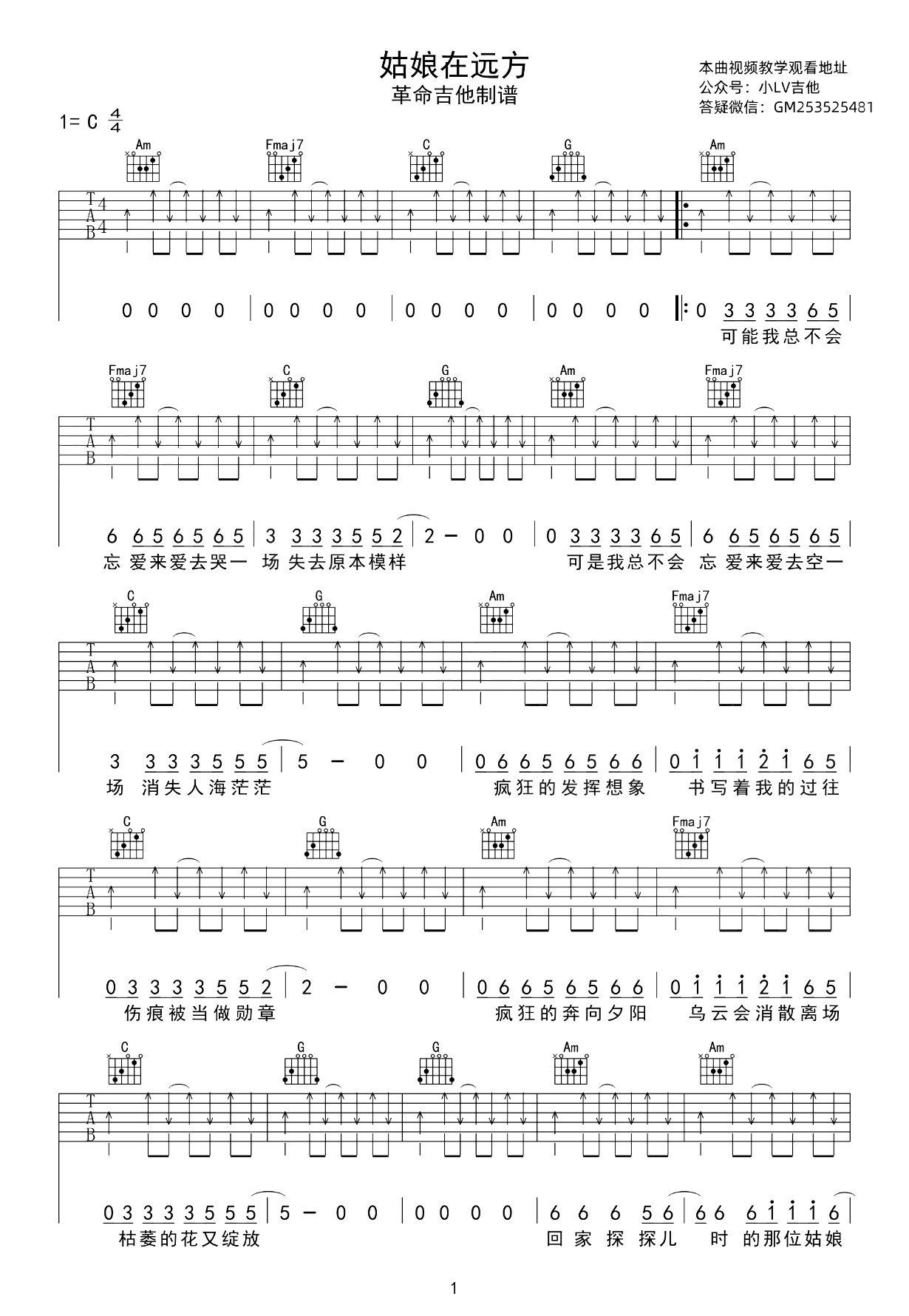 吉他姑娘在远方吉他谱_柯柯柯啊_C调弹唱谱_吉他教学视频