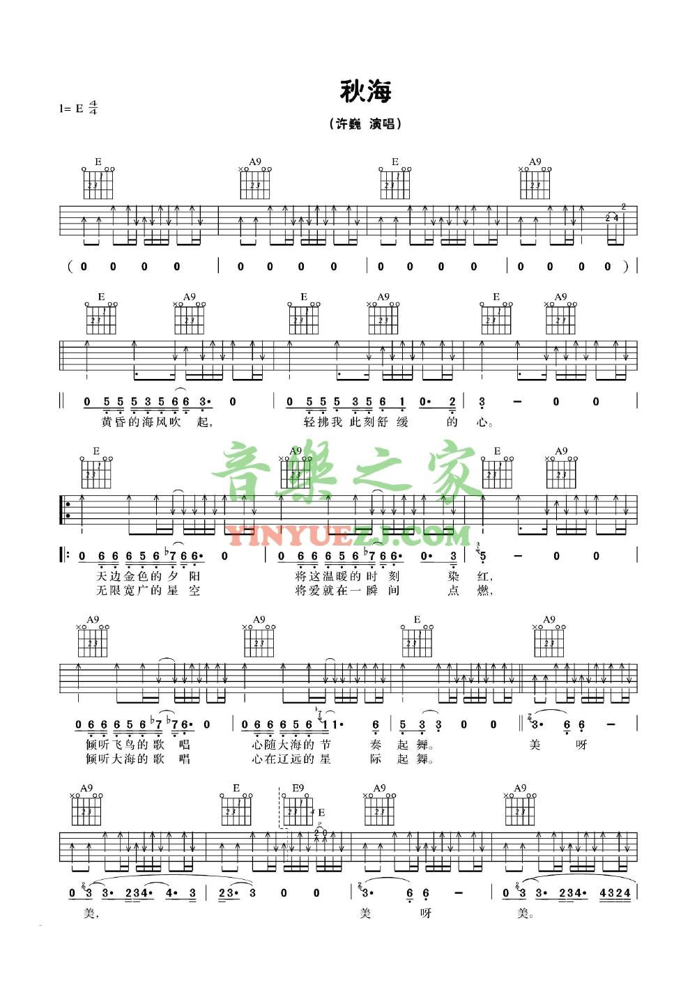 许巍《秋海》吉他谱,YYZJ编配出品,共有5张高清图谱。...