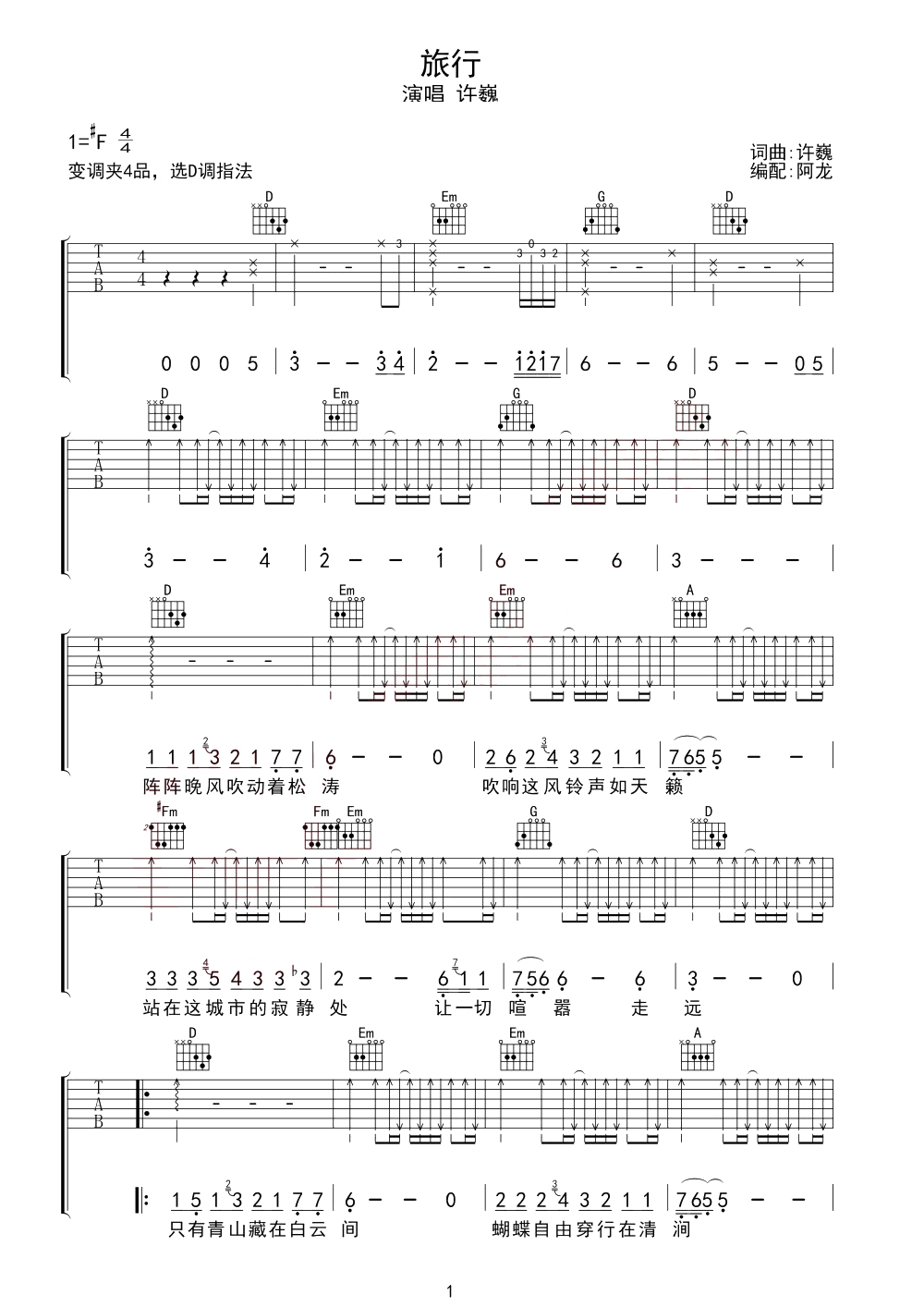 吉他许巍《旅行》吉他谱 - 好听到爆炸