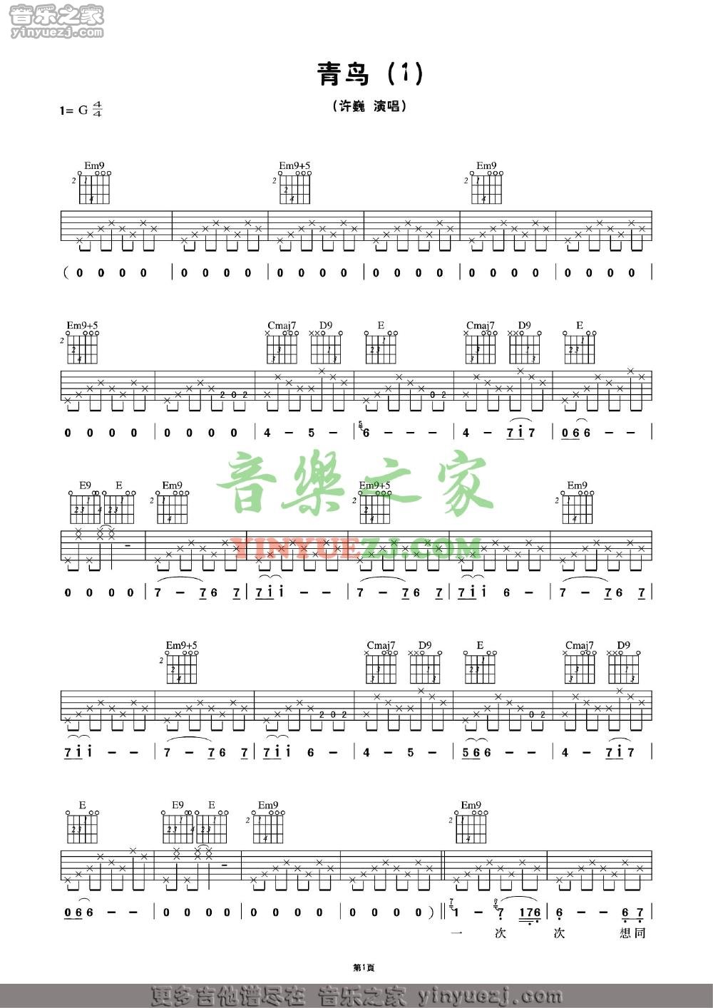 吉他许巍《青鸟1》吉他谱 - 完整版
