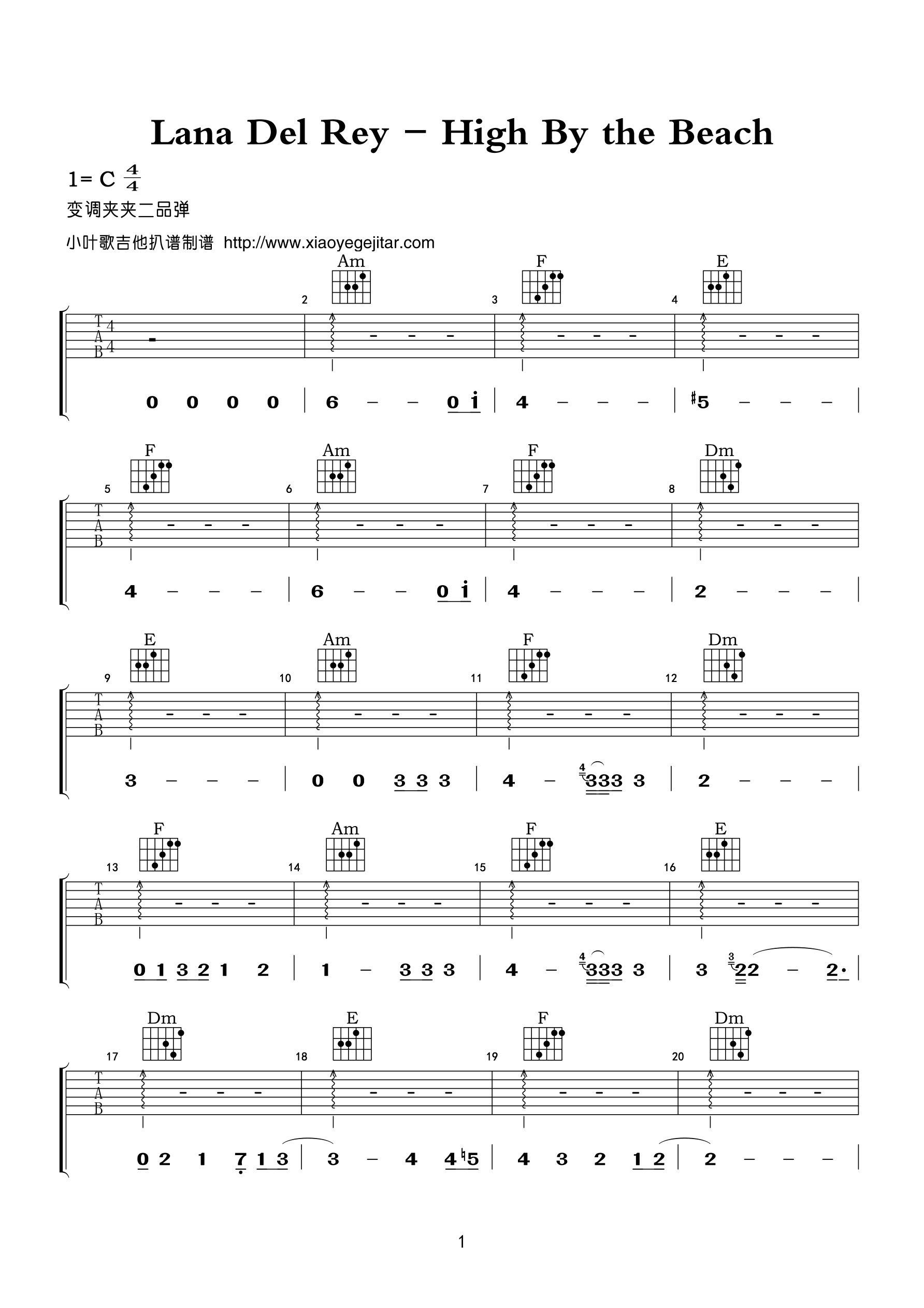 《HighBytheBeach》吉他谱,小叶歌编配出品,共有6张高清图谱。...