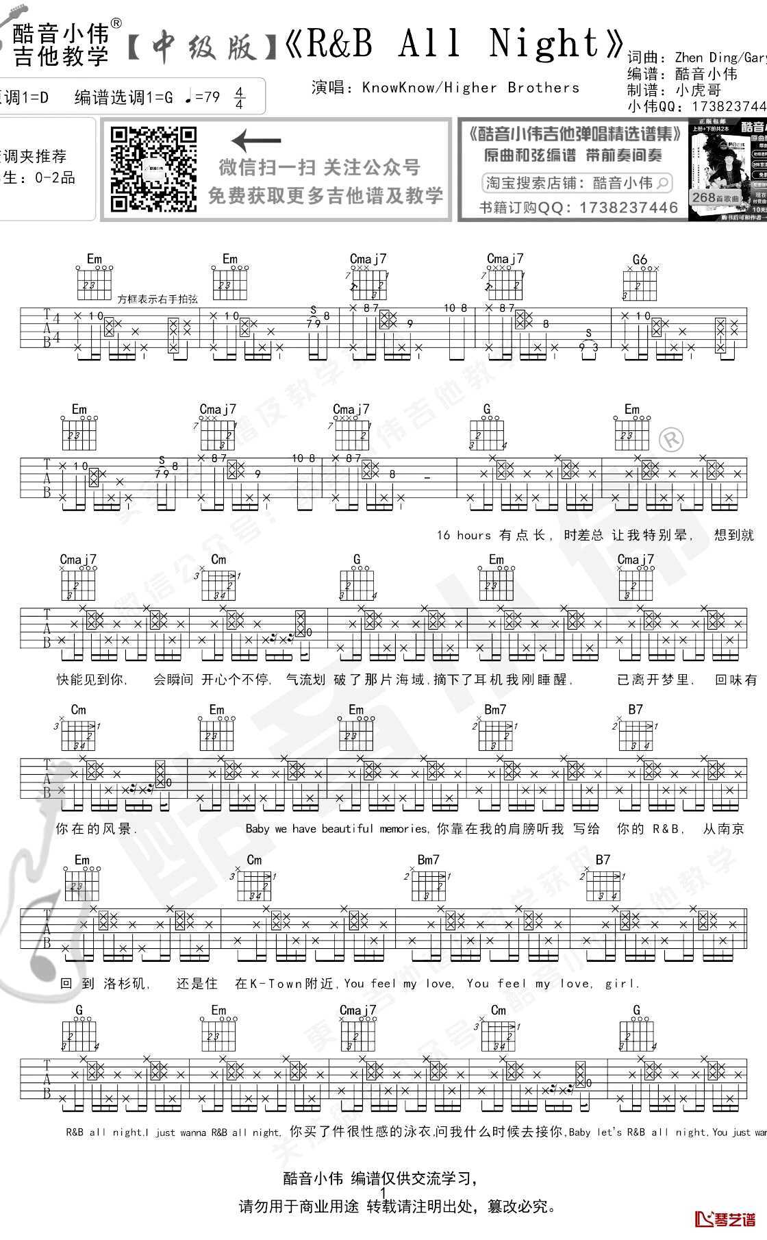 KnowKnow《R&BAllNight》吉他谱_G调吉他弹唱谱_中级版...